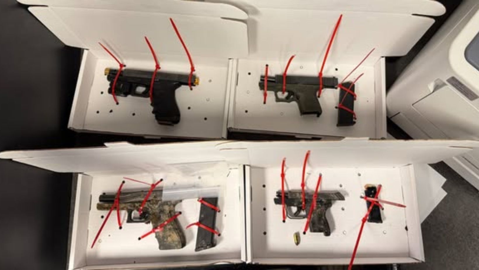 Se hallaron cuatro armas de fuego cargadas, dos de ellas modificadas con dispositivos automáticos. Esto aumenta su peligrosidad y es ilegal bajo la ley estatal y federal.
