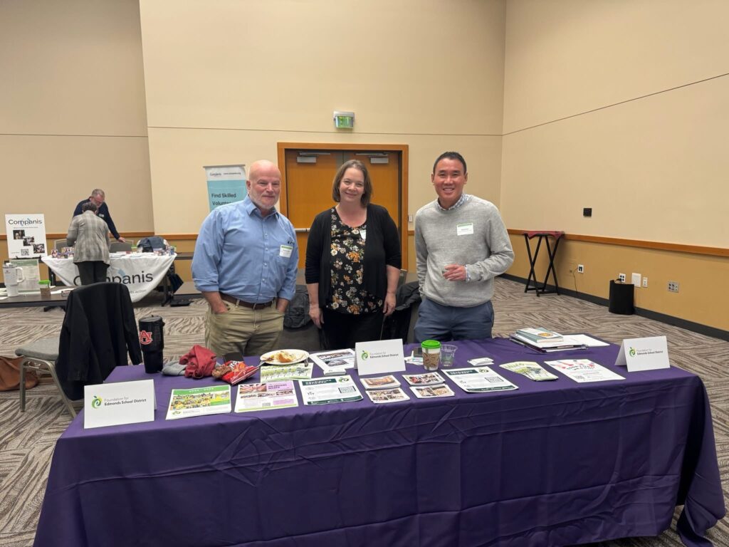 Izquierda a derecha: Thame Fuller, Elaine Hall Foundation del distrito escolar de Edmonds y David Lee Gerente de Marketing y Comunicaciones Digitales de Verdant. Foto: Facebook Verdant.