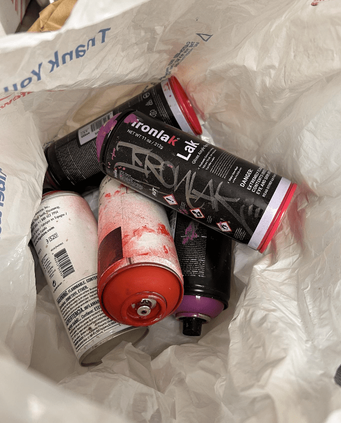En el lugar los agentes recuperaron cinco latas de aerosol desechadas y las integraron para análisis de huellas. También hubo un comercio afectado, el cual ya había cubierto el grafiti; el daño estimado inicial fue de $250 dólares, mientras que la ciudad calculó $1,110 dólares por la limpieza del puente.
