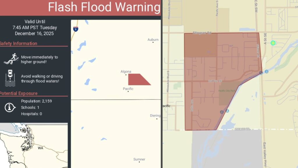 Por otro lado, las autoridades de la ciudad de Auburn emitieron una alerta de inundaciones repentinas este martes 16 de diciembre, luego de confirmarse una falla en una barrera HESCO (que es un muro defensivo relleno de tierra) instalada a lo largo del río White. La situación representa un riesgo inmediato para residentes de la ciudad de Pacific, en el sector sur del estado de Washington.