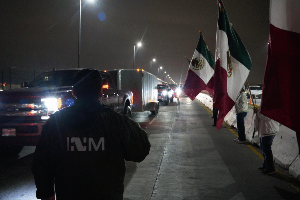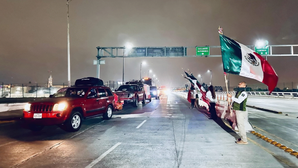 La Caravana Migrante 2025 contó con el respaldo de autoridades mexicanas y del gobierno municipal de Laredo, lo que permitió un flujo continuo sin incidentes reportados durante la madrugada.