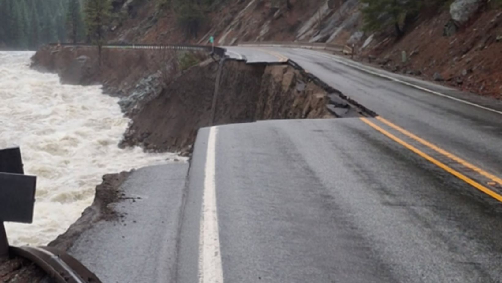 La Carretera 2 concentró parte importante del impacto. Hubo segmentos con cierres prolongados entre Skykomish y Leavenworth, con zonas cubiertas por escombros y otros tramos con pérdida total del pavimento y hasta la base en la que se sostiene la vía.