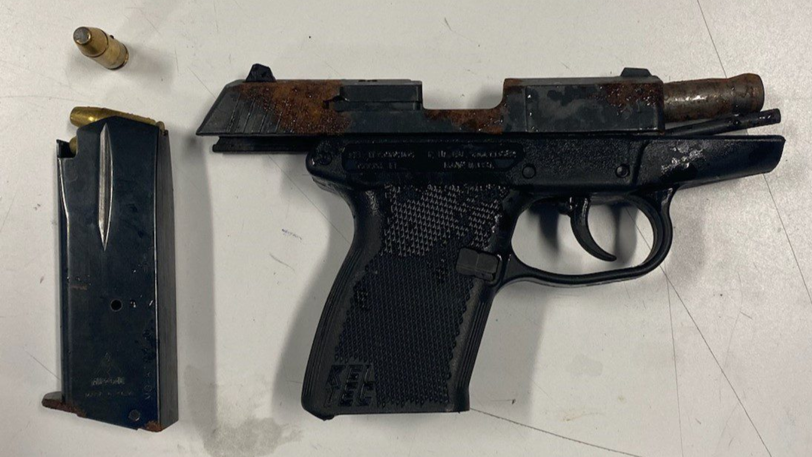 De acuerdo con el informe policial, un testigo observó a un hombre forzar una caja fuerte abandonada en un callejón. El sospechoso utilizó una palanca y presuntamente extrajo una pistola del interior.