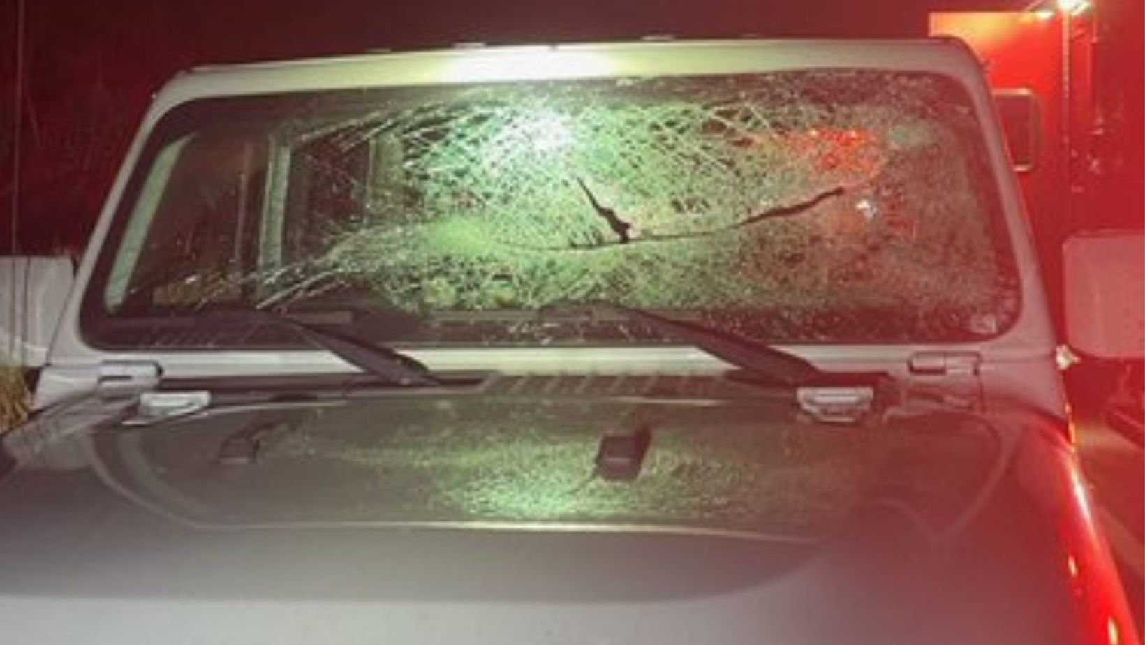 El agente Kameron Watts explicó que el la cubierta del motor se soltó del vehículo, alcanzó altura y golpeó directamente el parabrisas del Jeep. El conductor, que circulaba por el carril derecho, reaccionó de inmediato y evitó resultar herido.
