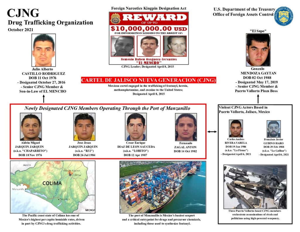 Por su liderazgo del CJNG, su capacidad bélica y el tráfico internacional de drogas sintéticas.