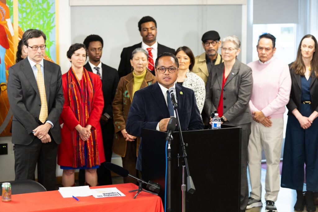 El representante Chris Stearns, quien participó en el evento en El Centro de la Raza, destacó el impacto de la legislación en las comunidades afectadas por operativos migratorios. “Estoy orgulloso de haber apoyado esta medida que prohíbe a los agentes, incluyendo a ICE, usar máscaras. Nuestras comunidades han enfrentado miedo y división, y era necesario actuar”, expresó.