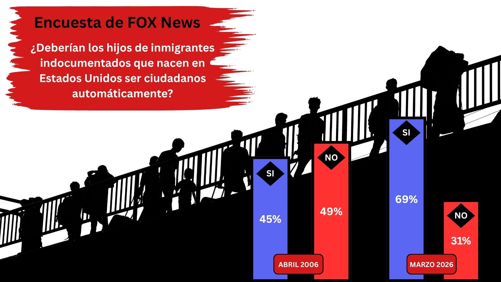 La encuesta de FOX News, refleja un cambio importante en la opinión pública sobre uno de los temas más sensibles del debate migratorio en el país. La pregunta central gira en torno a si los niños nacidos en territorio estadounidense deben recibir automáticamente la ciudadanía, incluso cuando sus padres no tengan estatus migratorio legal.