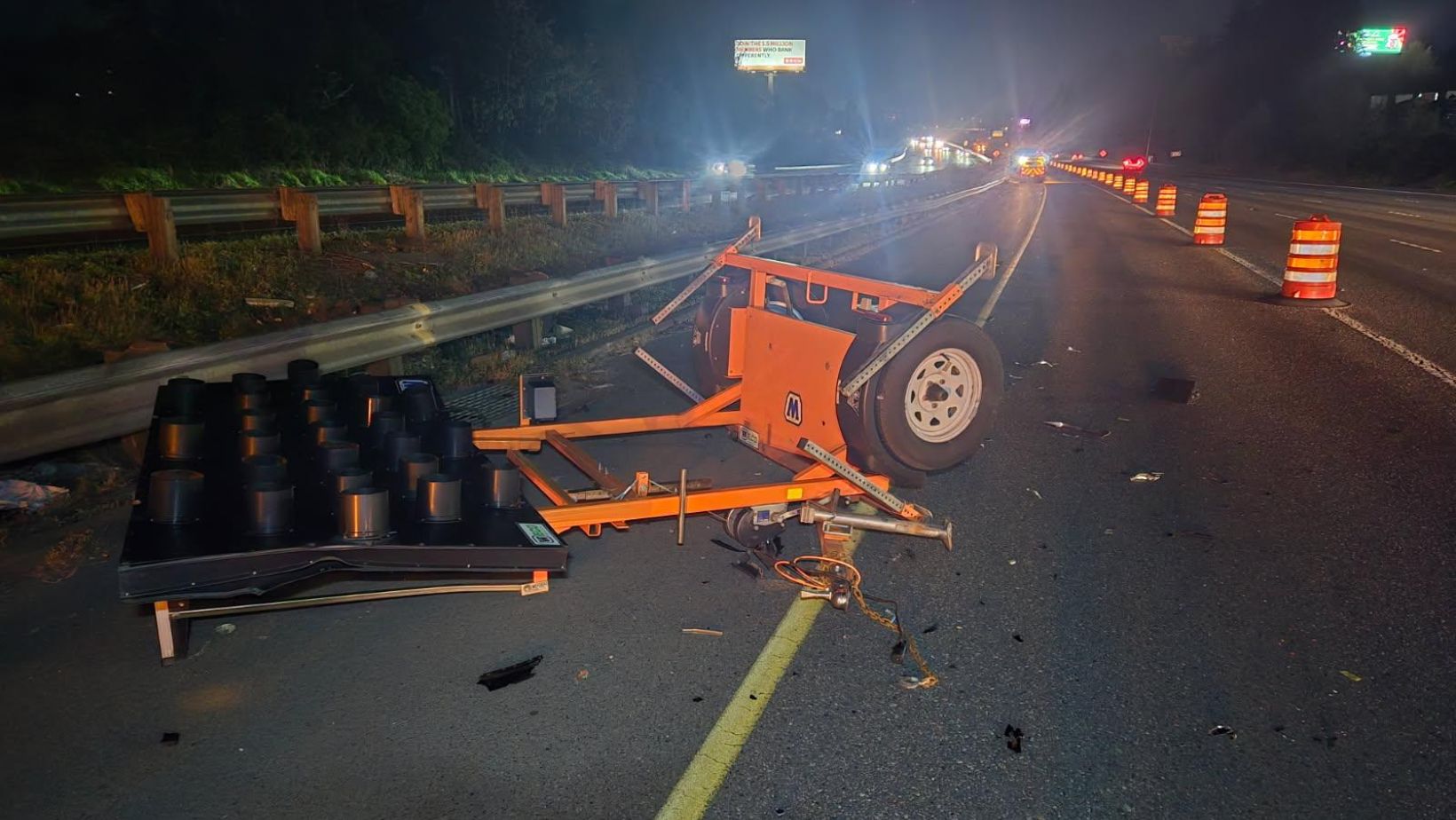 El conductor impactó un panel de señalización con flechas intermitentes mientras el equipo del WSDOT colocaba un letrero electrónico elevado de gran tamaño.